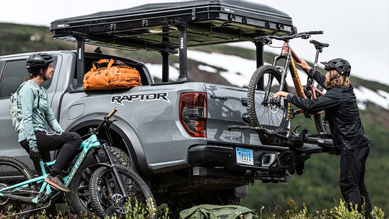 Thule Apex XT is a hanging hitch bike rack that can carry up to 5 bikes. This secure bike rack keeps bikes stable on the trip, and fits a range of frame styles and sizes. Perfect for a bike vacation with the whole family.
