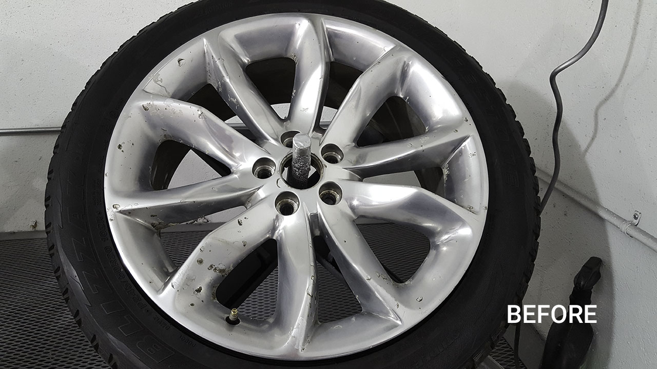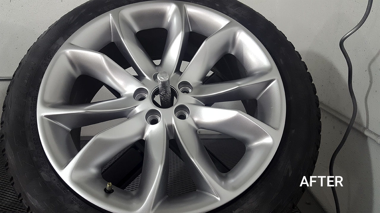 After cleaning your wheels, we will resurface your wheels to repair the surface face and lip. We apply a primer, paint, and clear-coat according to the original color and style.